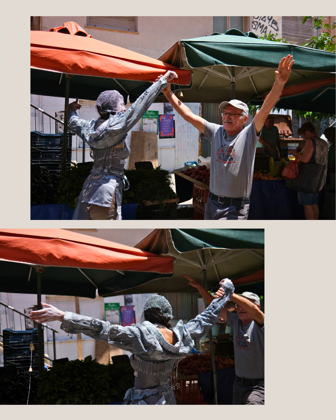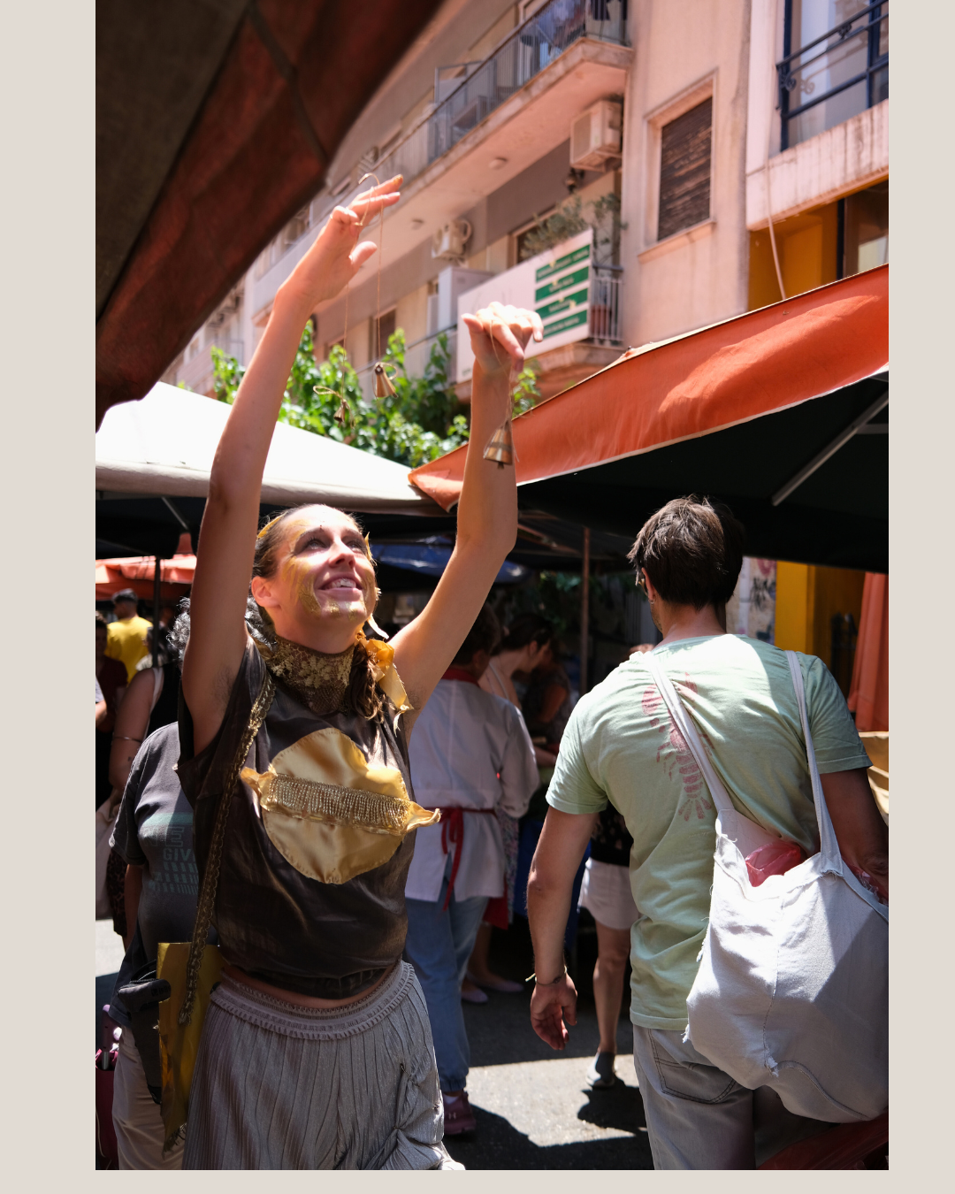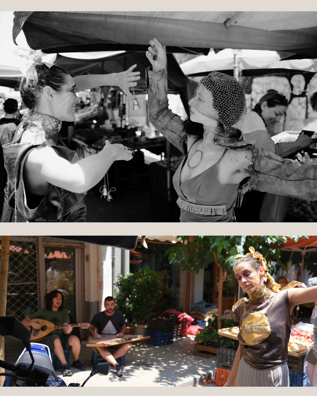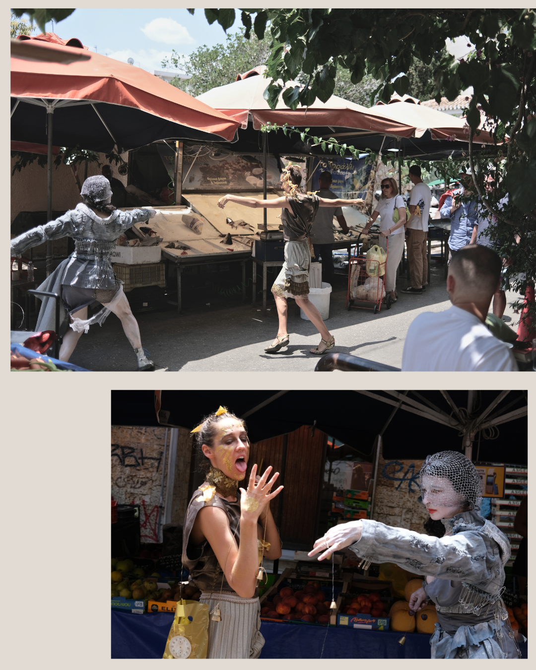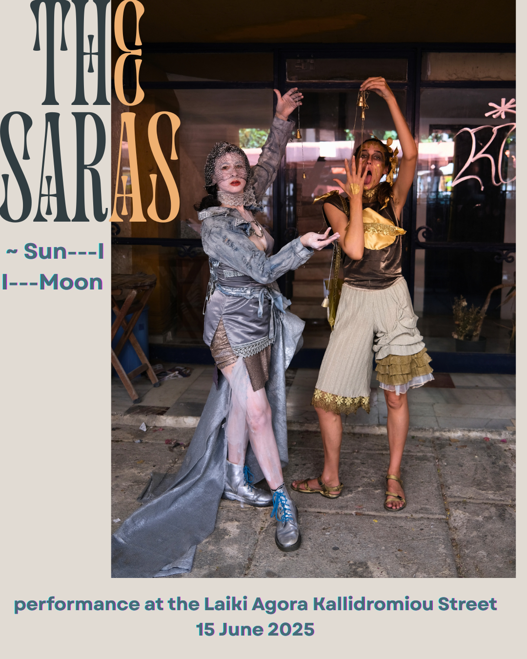 We are the Saras, two performance artists and friends who also both happen to be named Sara-with-no-H. Together we devise a performance for: the laiki agora market in Athens & Waking Life Festival in Alentejo, Portugal.