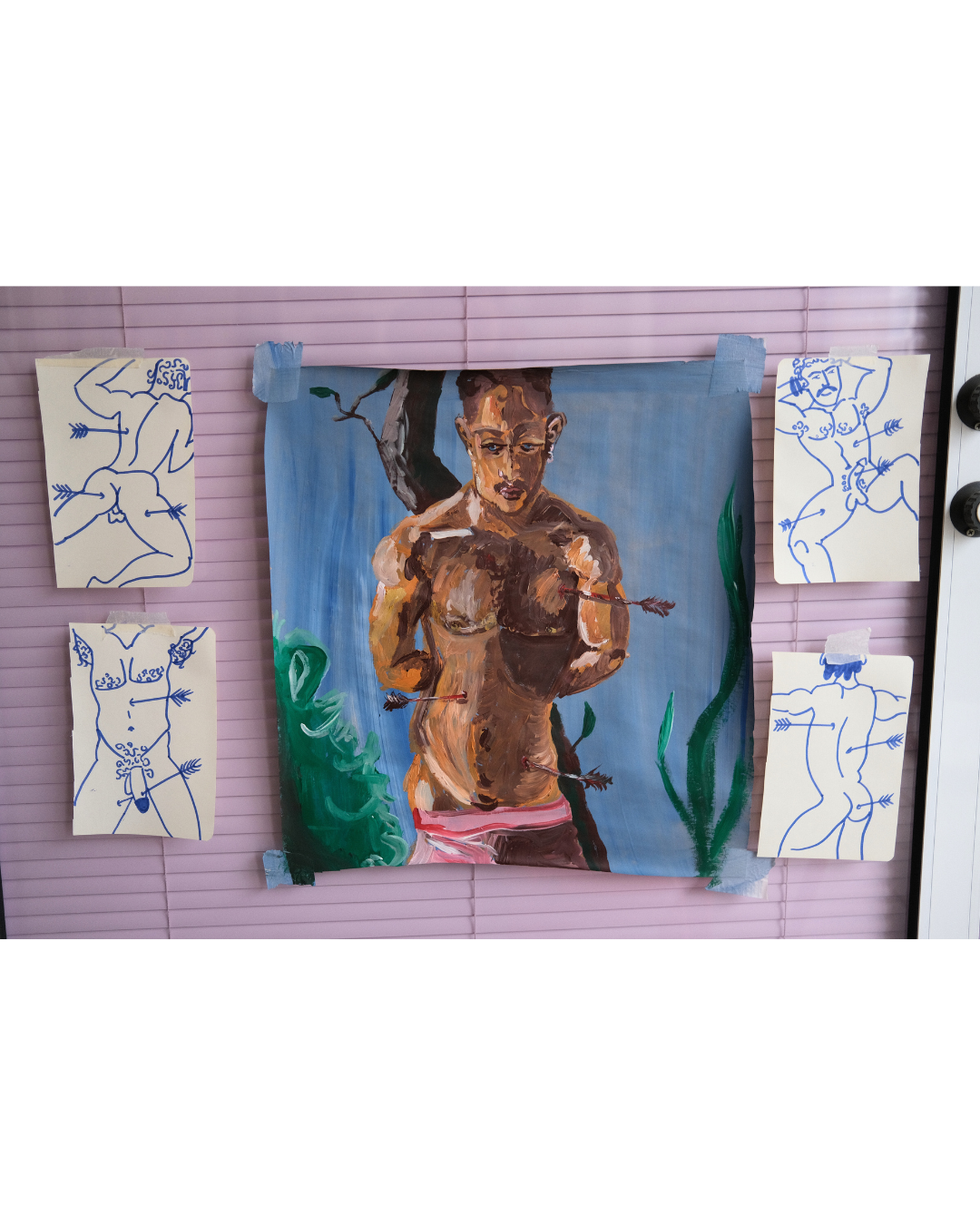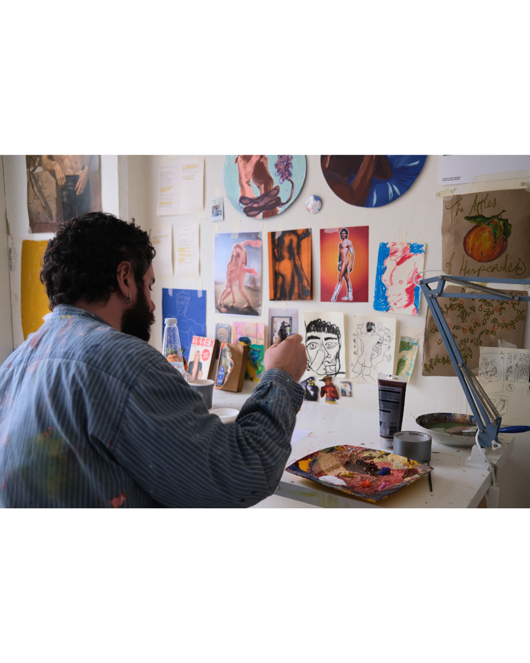 During his stay he worked on portraits of his husband to explore marriage symbolism and digital intimacy. While looking at symbolism and history he looked at Greek Mythology - in particular the story of Apollo and Hyacinthus as a way of thinking through queer love, loss, and transformation.